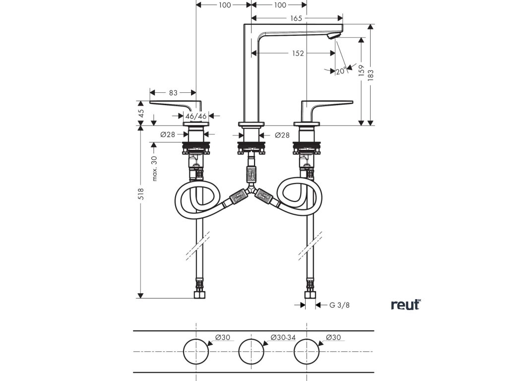 Hansgrohe Metropol Umývadlová batéria s výpusťou Push-Open, 3-otvorová inštalácia, kefovaný bronz 32515140-HG