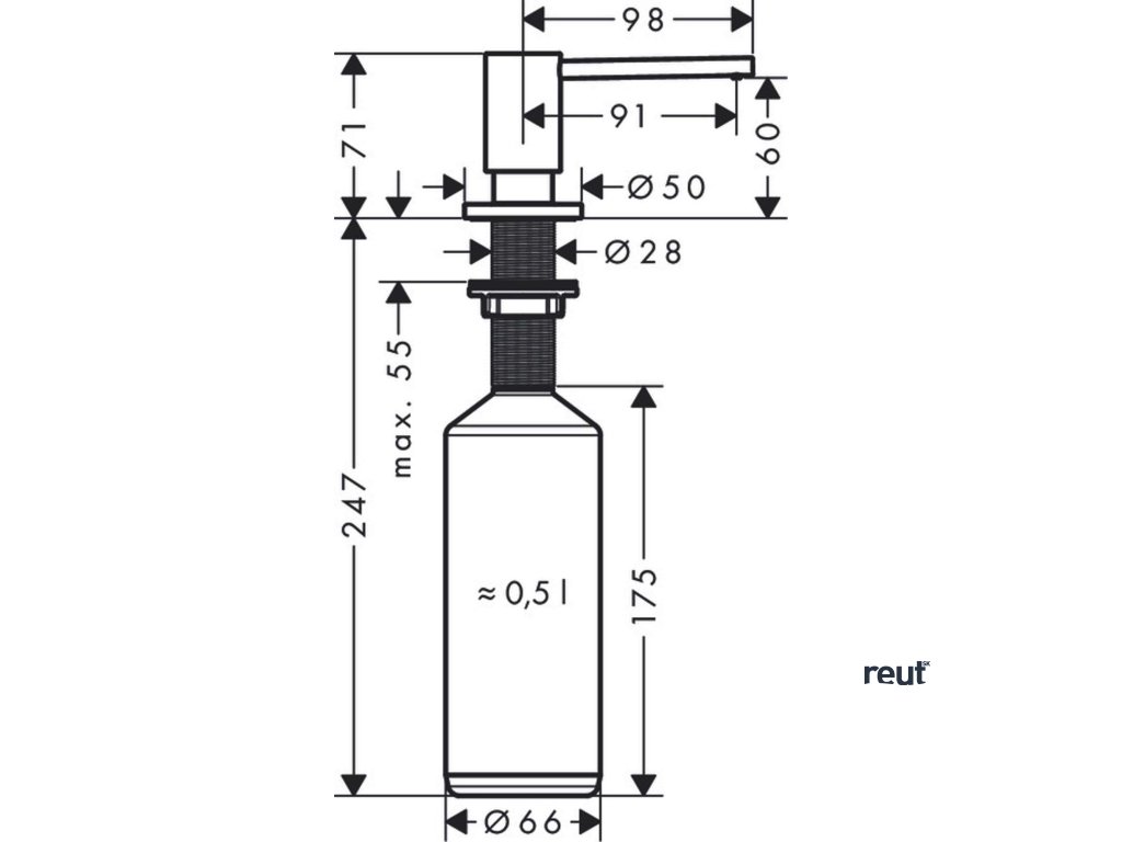 Hansgrohe Príslušenstvo Dávkovač umývacích prostriedkov A41, 500 ml, nerezová 40438800-HG