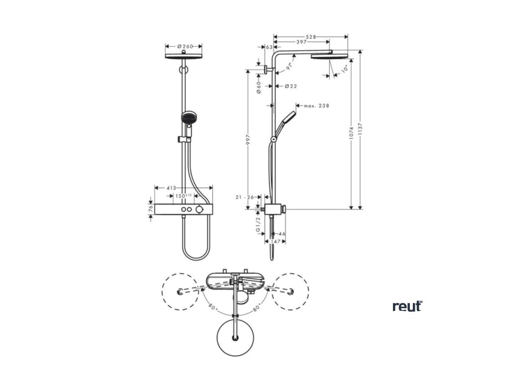 Hansgrohe Pulsify S Sprchový set s termostatom, priemer 26 cm, 3 prúdy, EcoSmart, chróm 24221000-HG