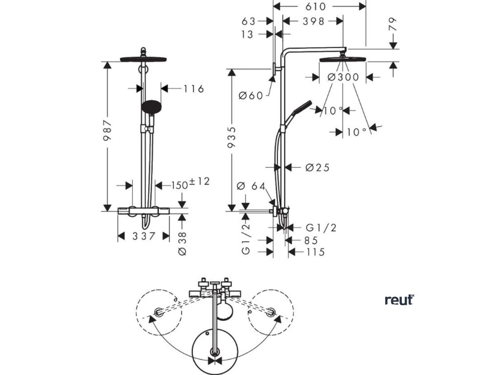 Hansgrohe Raindance Alive S Puro Sprchový set s termostatom, 21x34 cm, 3 prúdy, EcoSmart, chróm 24593000-HG