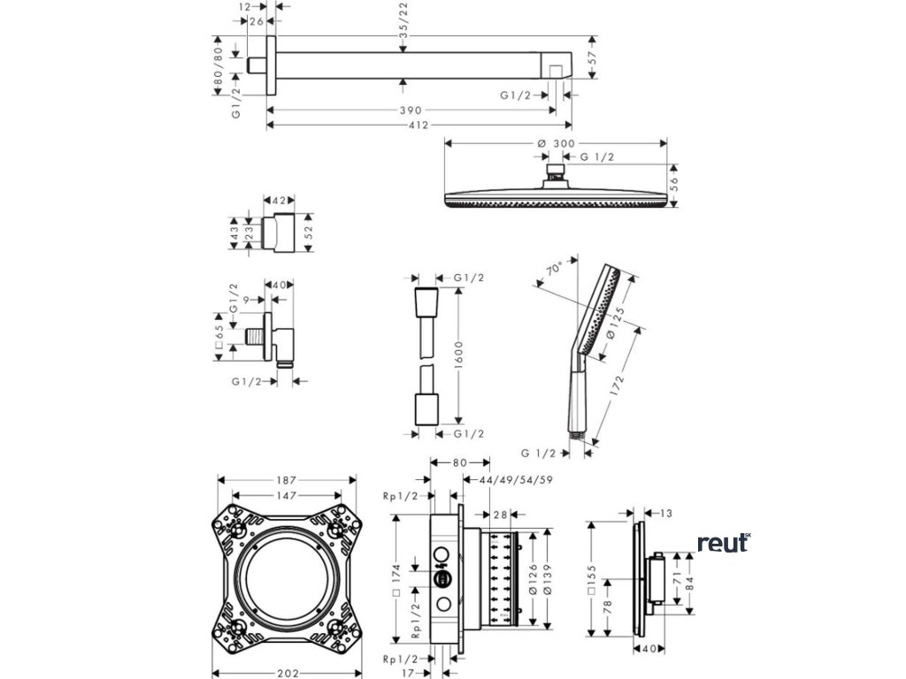 Hansgrohe Raindance Alive S Sprchový set s termostatom pod omietku, priemer 30 cm, 3 prúdy, matná čierna 24630670-HG