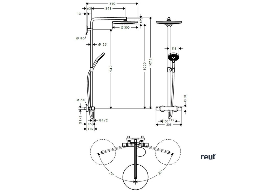 Hansgrohe Raindance Select S Sprchový set s termostatom, 30 cm, 2 prúdy, chróm 27133000-HG