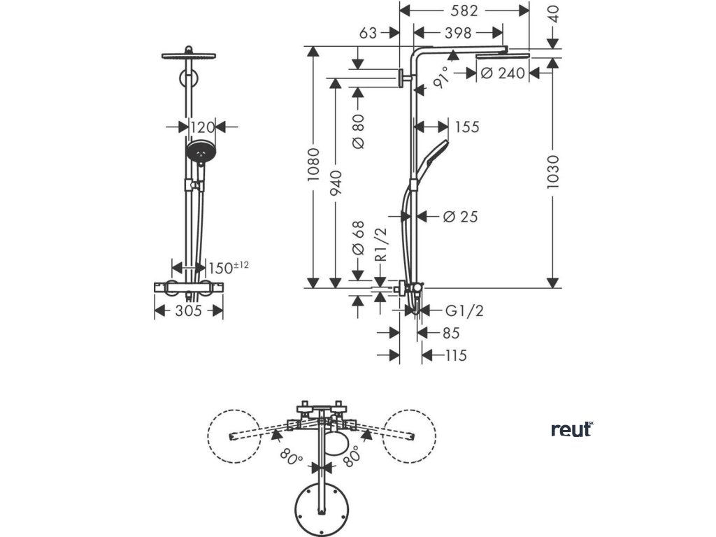Hansgrohe Raindance Select S Sprchový set Showerpipe s termostatom, 3 prúdy, matná čierna 27633670-HG