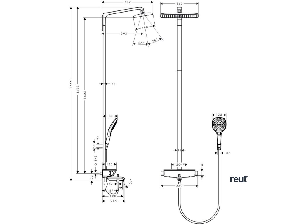 Hansgrohe Raindance Select Sprchový set Showerpipe 360 ​​s vaňovým termostatom, 3 prúdy, biela/chróm 27113400-HG