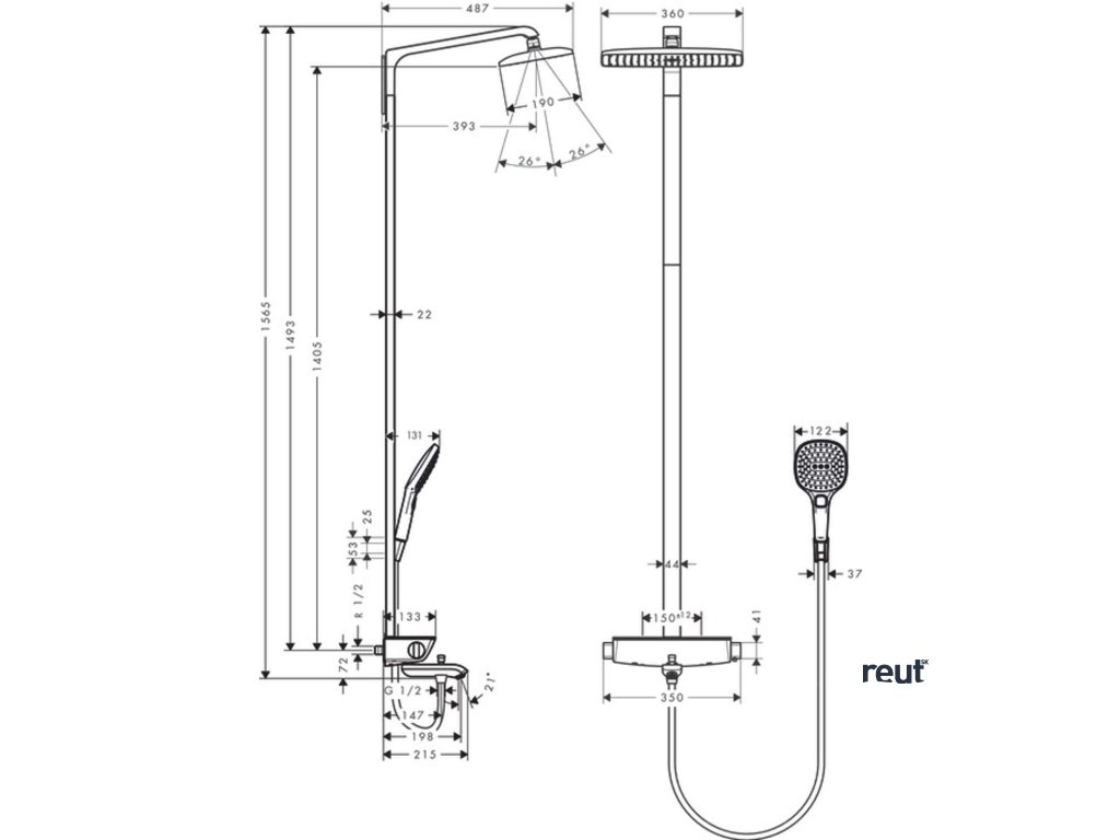 Hansgrohe Raindance Select Sprchový set Showerpipe 360 s vaňovým termostatom, 3 prúdy, chróm 27113000-HG