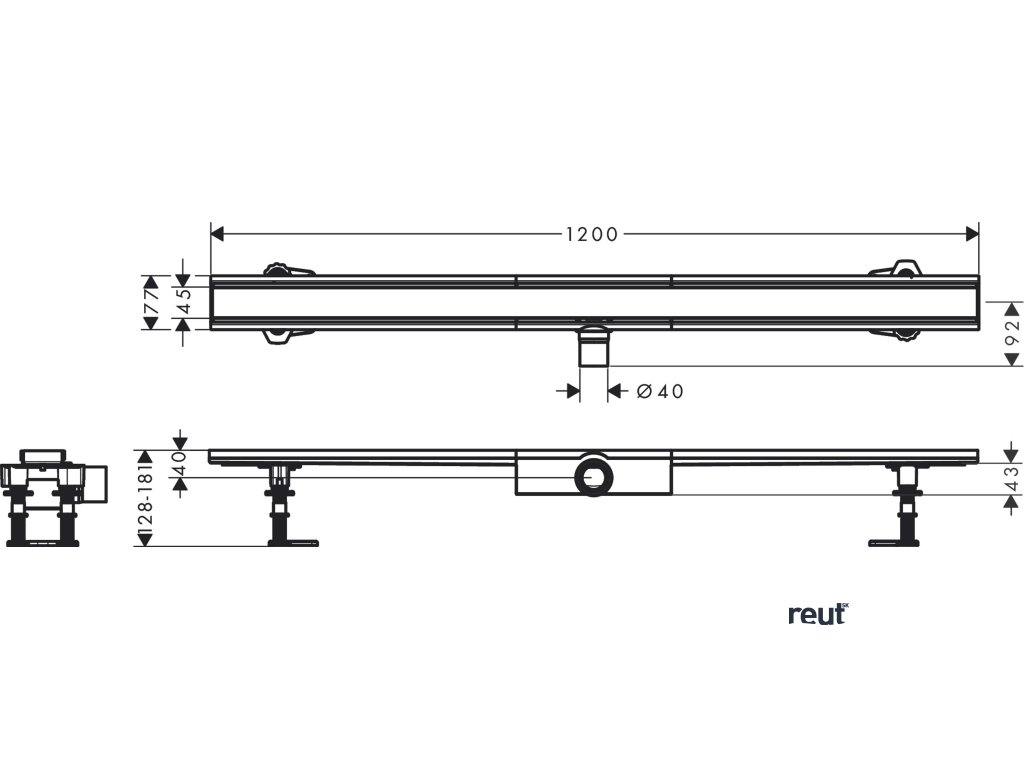 Hansgrohe RainDrain Compact Sprchový žľab 120 cm, s roštom, kefovaná nerezová oceľ 56172800-HG
