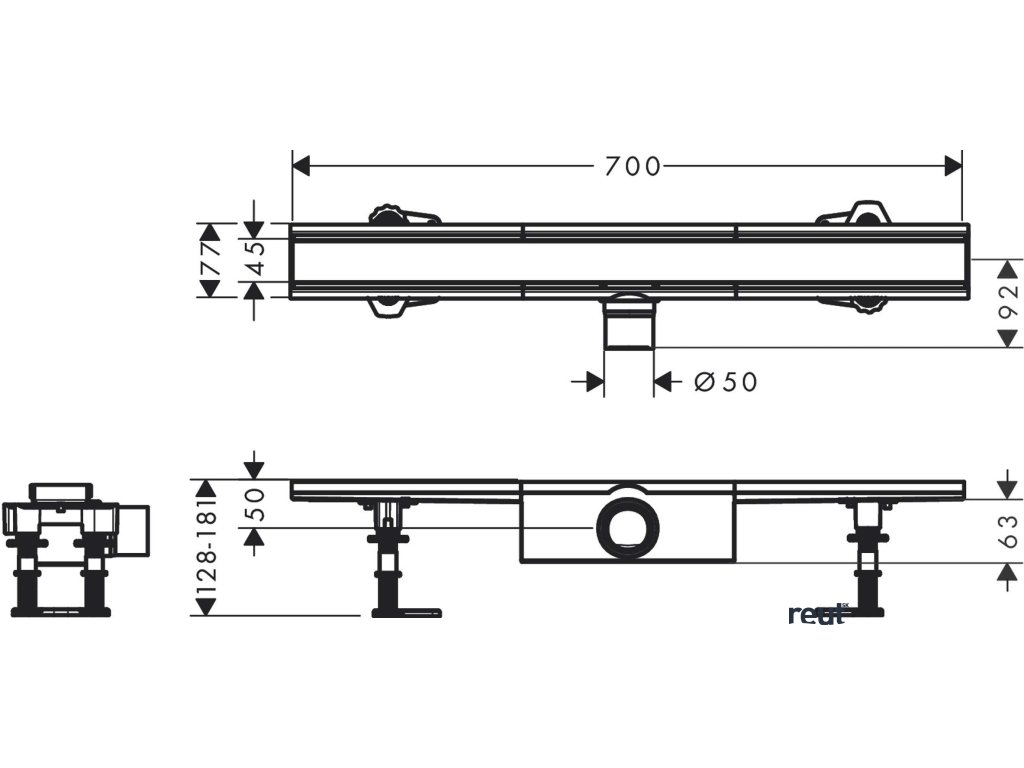 Hansgrohe RainDrain Compact Sprchový žľab 70 cm, s roštom, kefovaná nerezová oceľ 56176800-HG