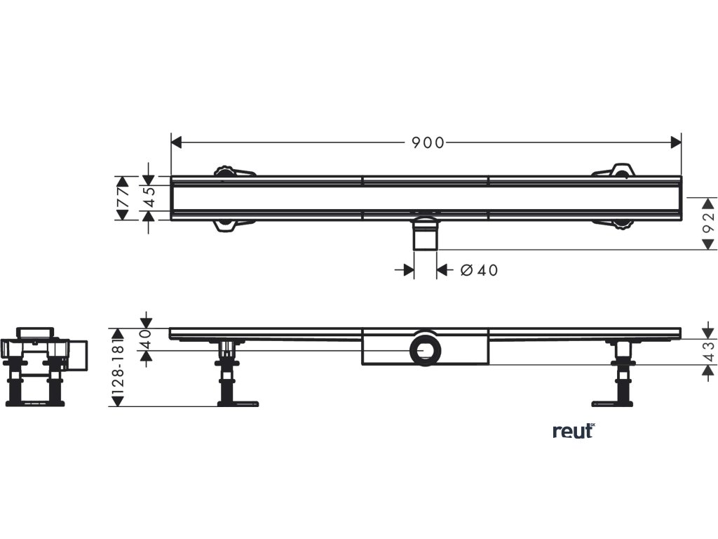 Hansgrohe RainDrain Compact Sprchový žľab 90 cm, s roštom, kefovaná nerezová oceľ 56168800-HG