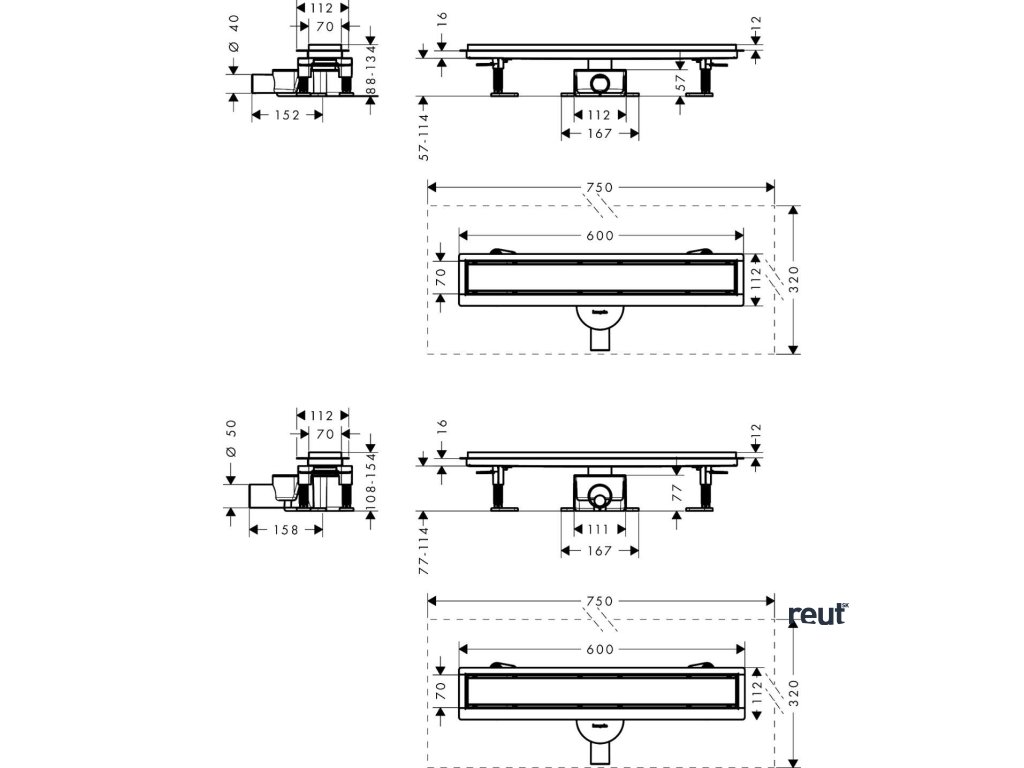 Hansgrohe RainDrain Go Sprchový žľab 60 cm s obojstranným roštom, na vloženie dlažby, matná čierna 56271670-HG