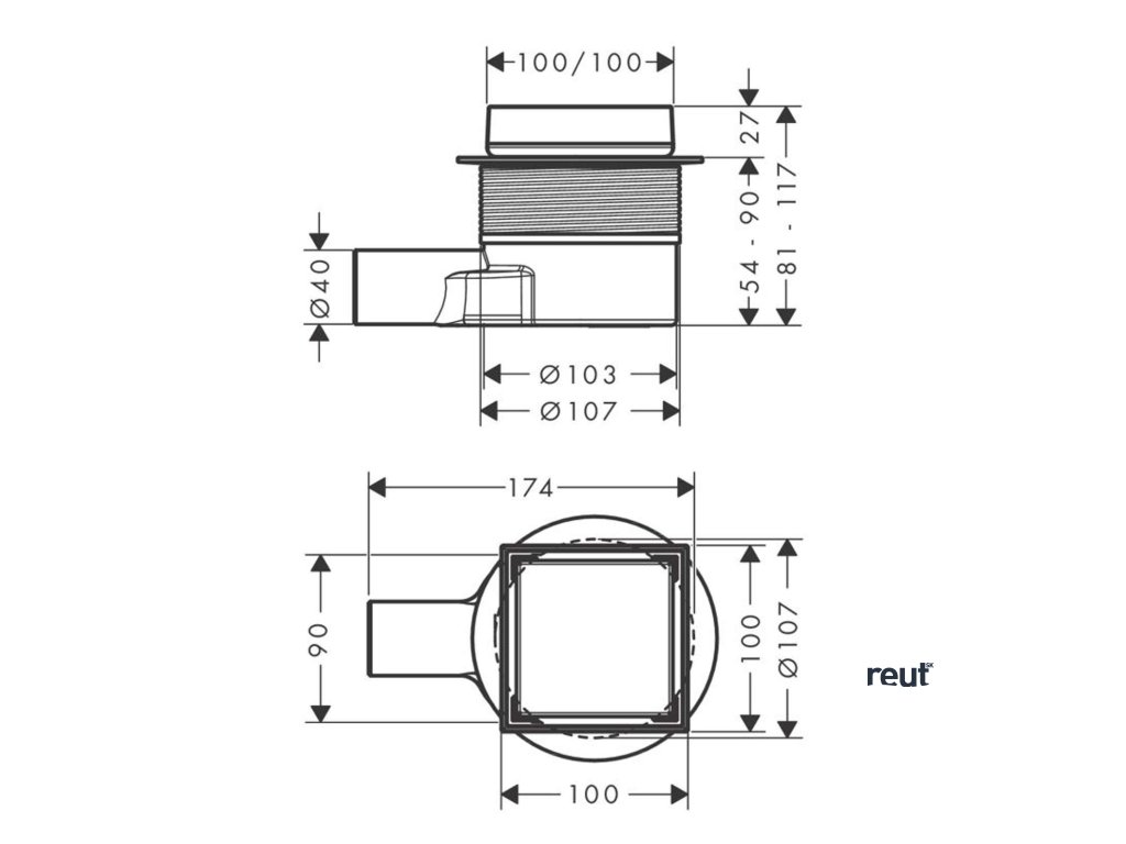 Hansgrohe RainDrain Point Podlahová vpusť, 10x10 cm, matná čierna 56247670-HG