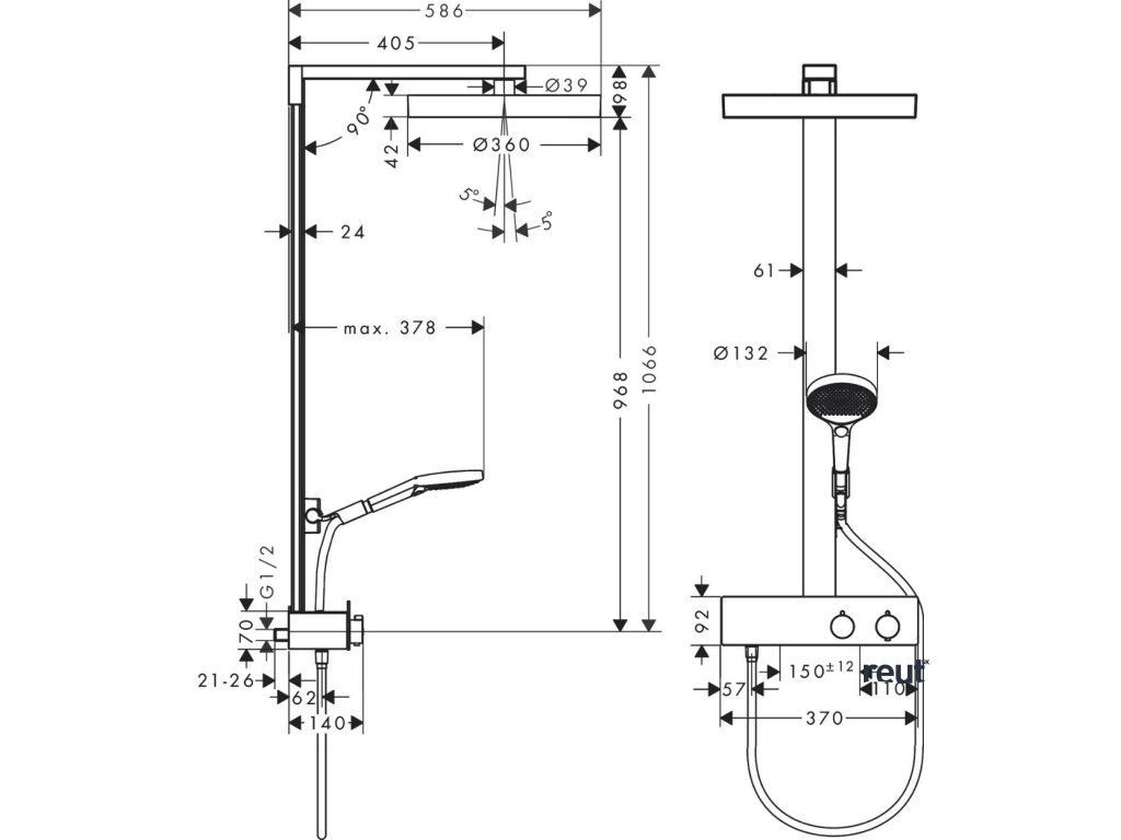 Hansgrohe Rainfinity Sprchový set s termostatom, priemer 36 cm, 3 prúdy, matná čierna 26853670-HG