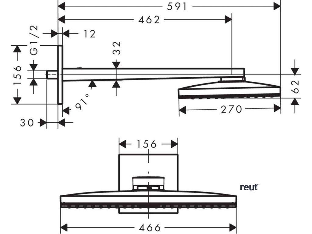 Hansgrohe Rainmaker Select Hlavová sprcha 460, 1 prúd, rameno 46 cm, EcoSmart 9 l/min, biela/chróm 24013400-HG