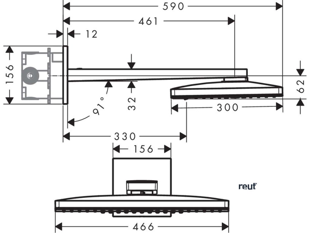 Hansgrohe Rainmaker Select Hlavová sprcha 460, 3 prúdy, sprchové rameno 46 cm, čierna/chróm 24007600-HG