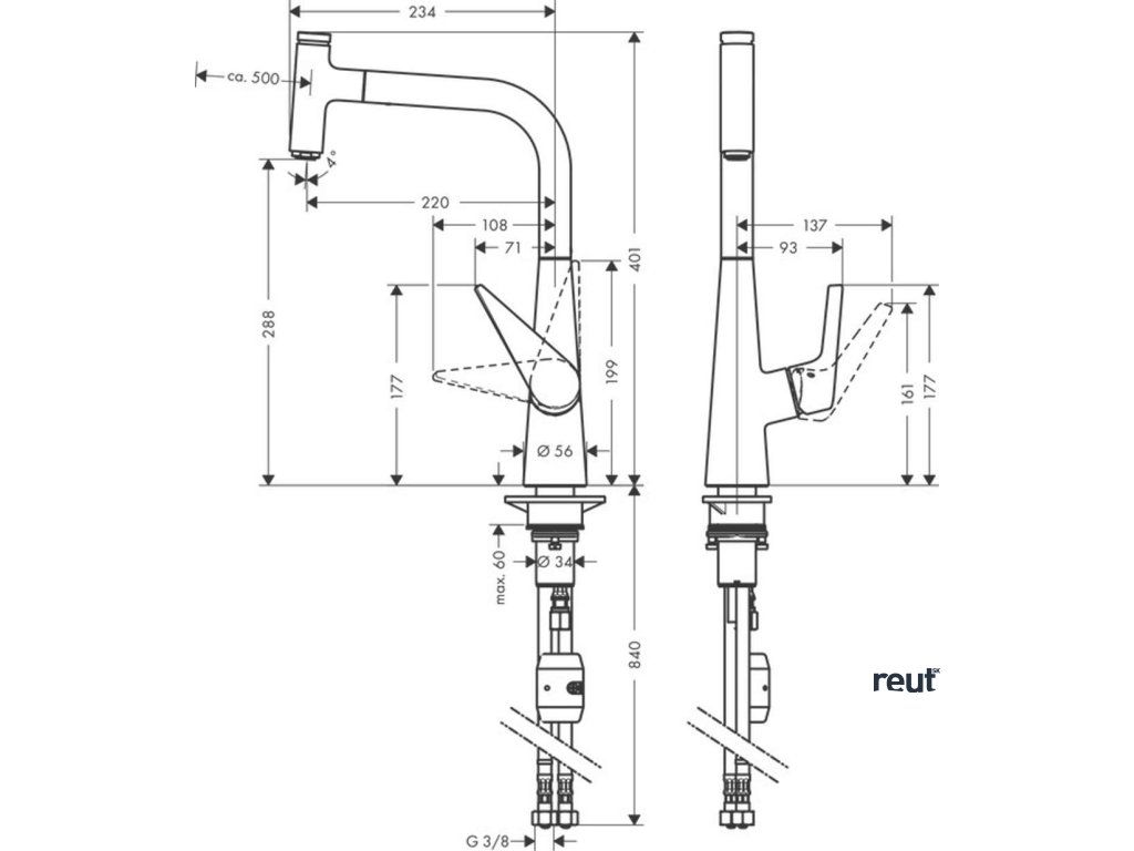 Hansgrohe Talis Select M51 Drezová batéria s výsuvnou koncovkou, EcoSmart, chróm 72826000-HG