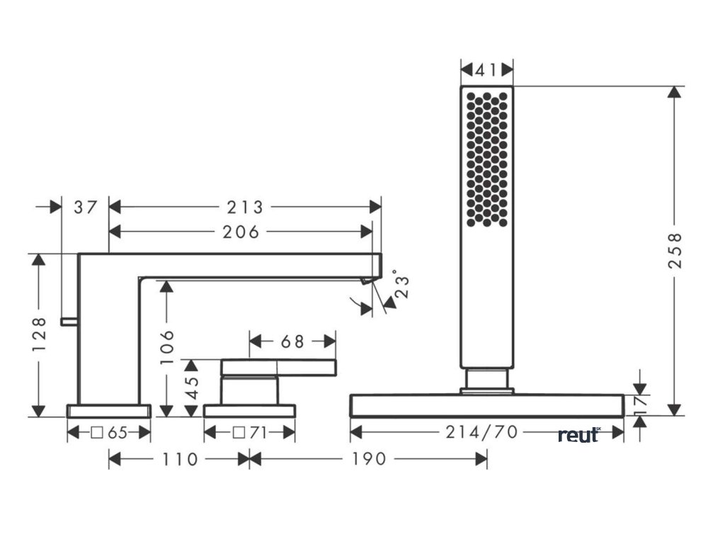 Hansgrohe Tecturis E Batéria na okraj vane, 3-otvorová inštalácia, sBox, matná čierna 73443670-HG
