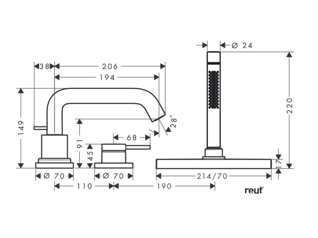 Hansgrohe Tecturis S Batéria na okraj vane, 3-otvorová inštalácia, sBox, matná biela 73447700-HG