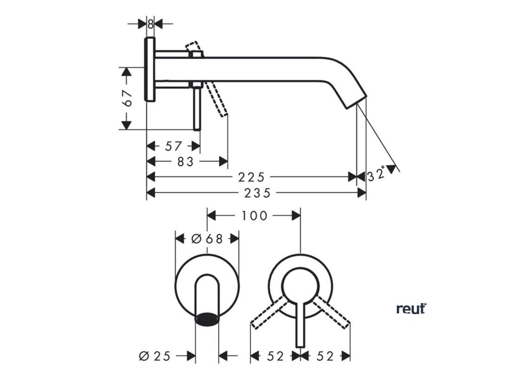 Hansgrohe Tecturis S Umývadlová batéria pod omietku, s výpusťou, 2-otvorová inštalácia, EcoSmart, chróm 73351000-HG