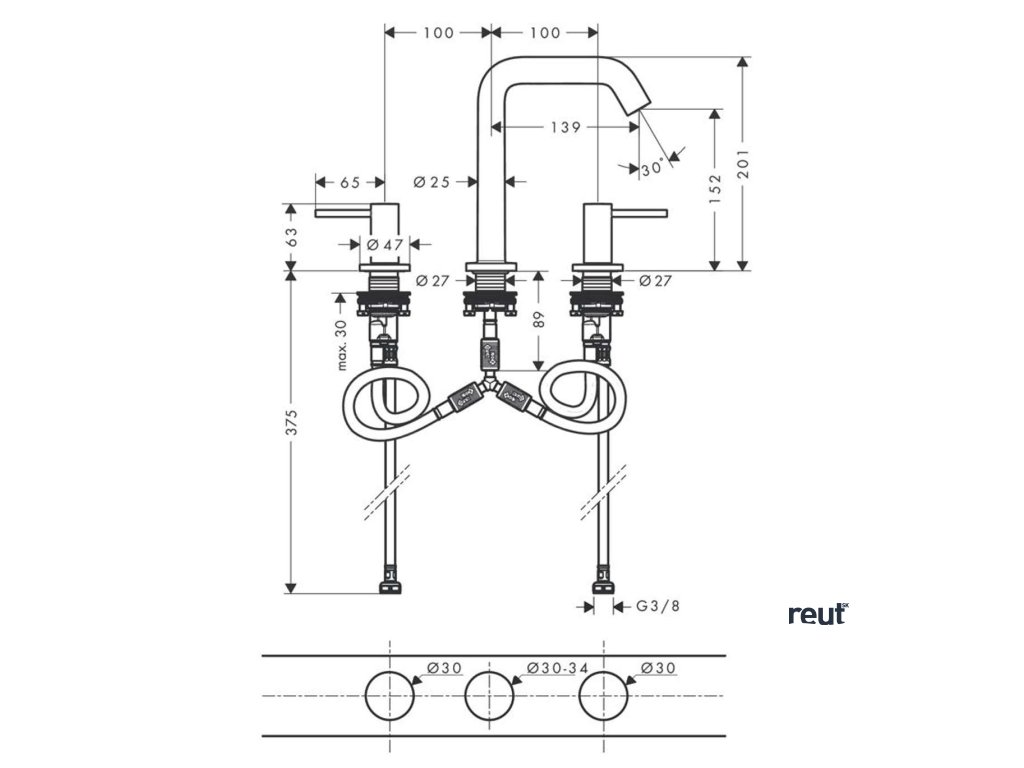 Hansgrohe Tecturis S Umývadlová batéria s výpusťou Push-Open, 3-otvorová inštalácia, EcoSmart, matná čierna 73330670-HG
