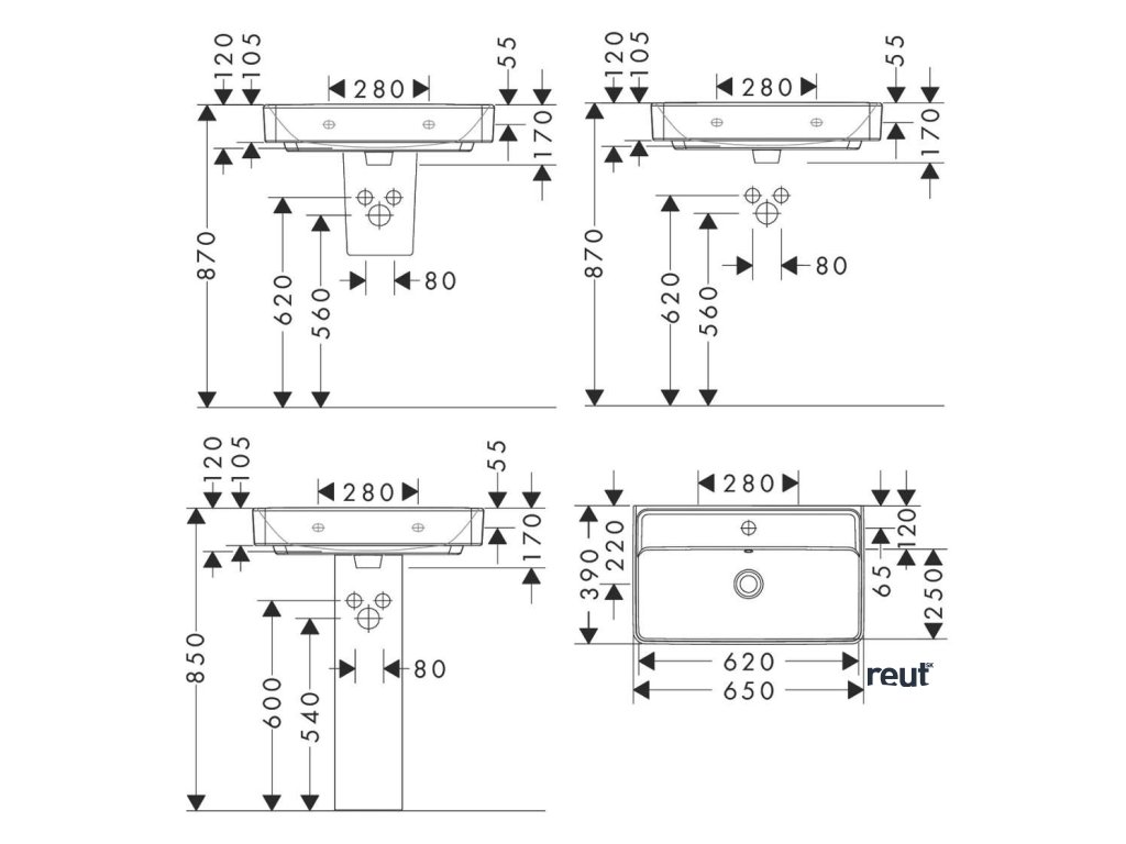 Hansgrohe Xanuia Q Umývadlo 65x39 cm, s prepadom, otvor na batériu, SmartClean, biela 61128450-HG