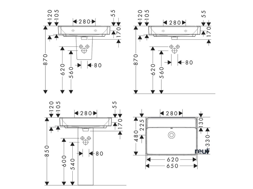 Hansgrohe Xanuia Q Umývadlo 65x48 cm, s prepadom, bez otvoru na batériu, biela 60245450-HG