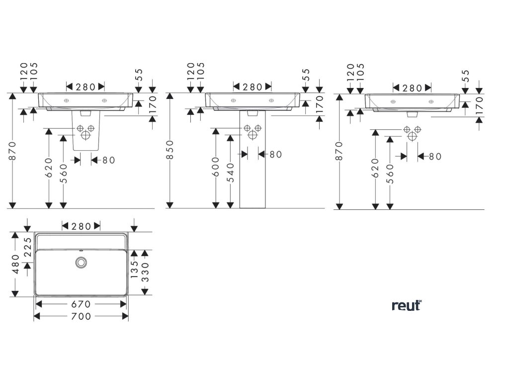 Hansgrohe Xanuia Q Umývadlo 70x48 cm, s prepadom, bez otvoru na batériu, biela 60222450-HG