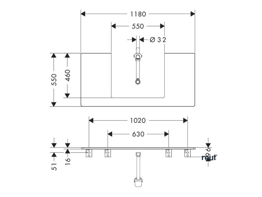 Hansgrohe Xelu Q Doska pod umývadlo 118x55 cm, výrez uprostred, matná sivá 54111910-HG