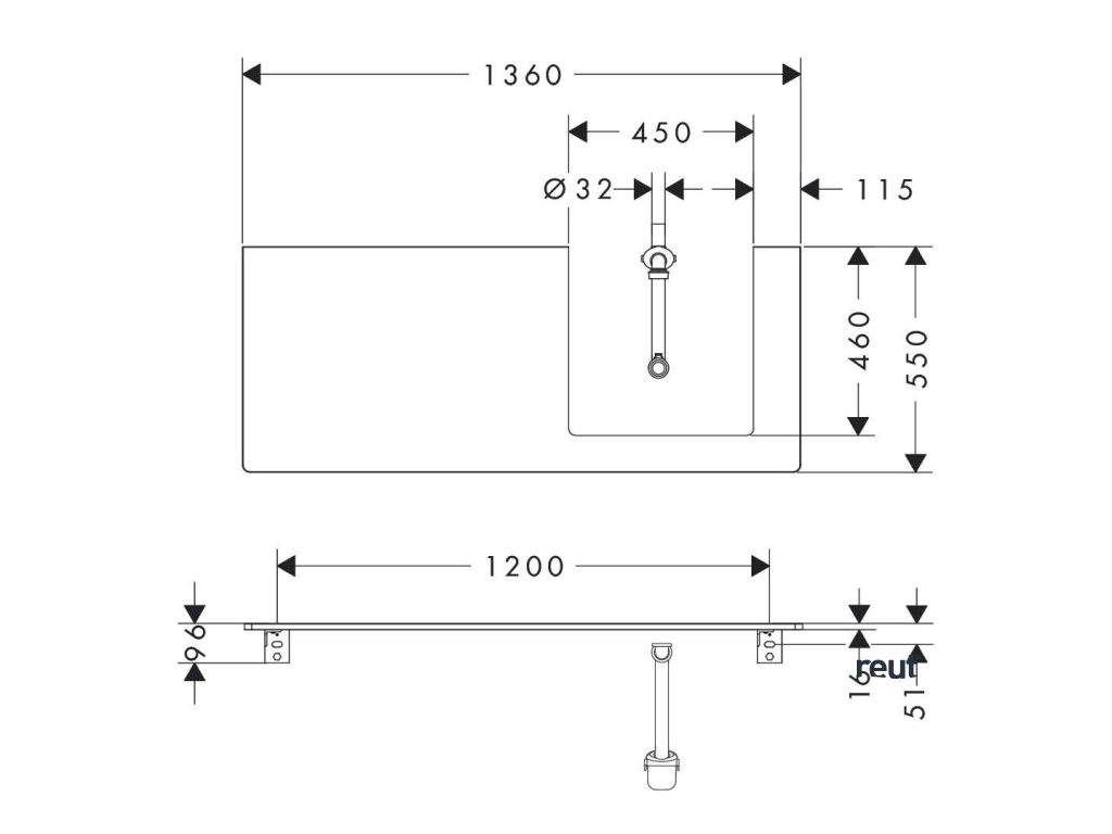 Hansgrohe Xelu Q Doska pod umývadlo 136x55 cm, výrez vpravo, tmavý orech 54098630-HG