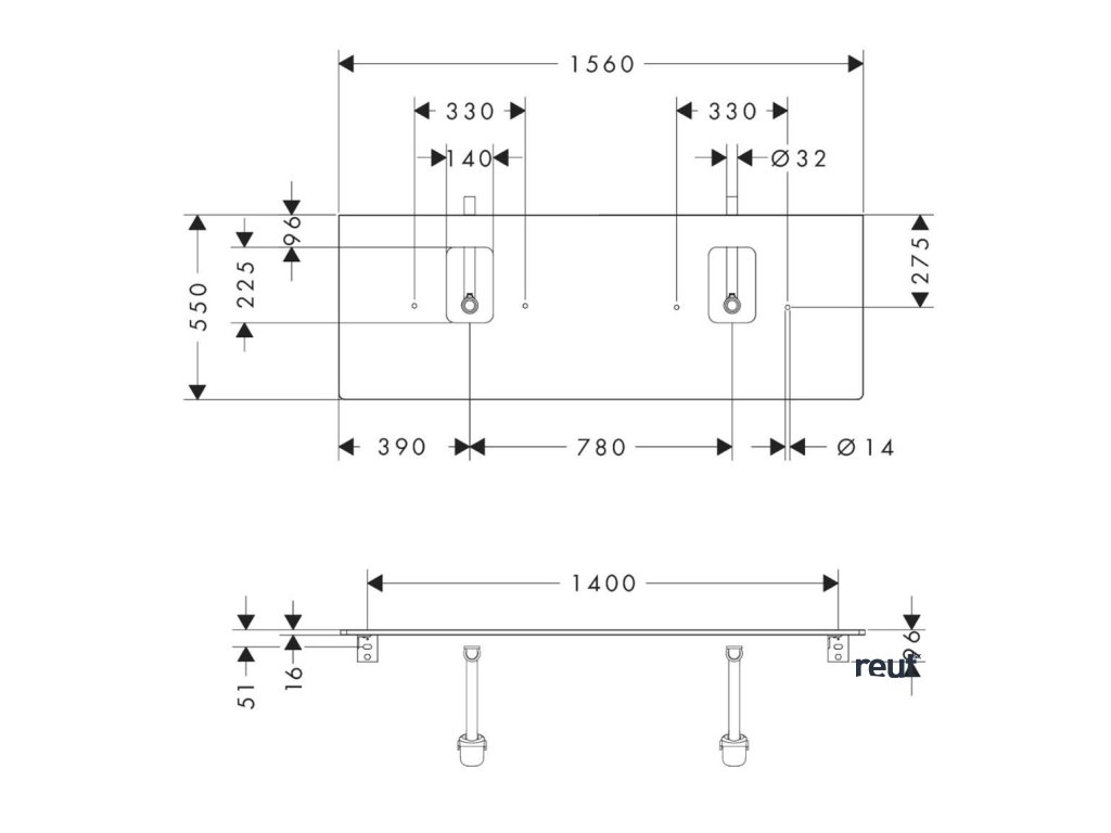 Hansgrohe Xelu Q Doska pod umývadlo 156x55 cm, 2 výrezy, tmavý orech 54126630-HG