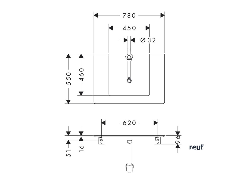 Hansgrohe Xelu Q Doska pod umývadlo 78x55 cm, výrez uprostred, tmavý orech 54094630-HG