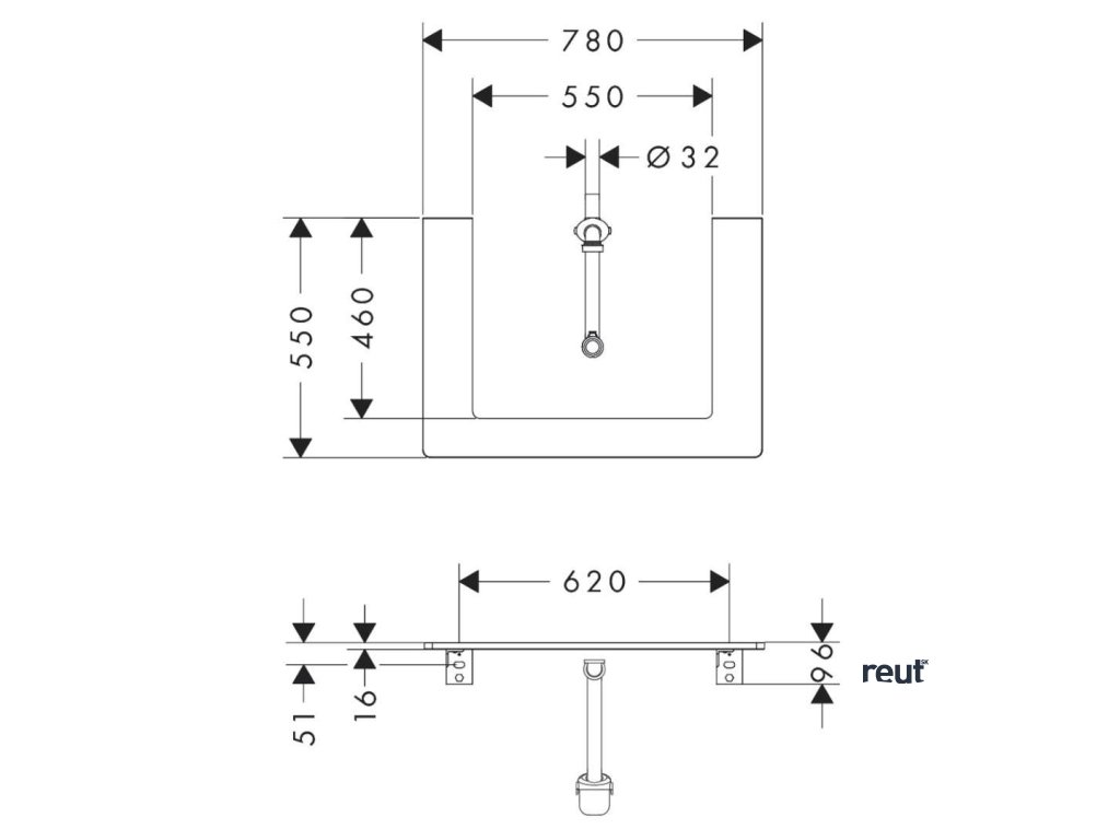 Hansgrohe Xelu Q Doska pod umývadlo 78x55 cm, výrez uprostred, tmavý orech 54109630-HG