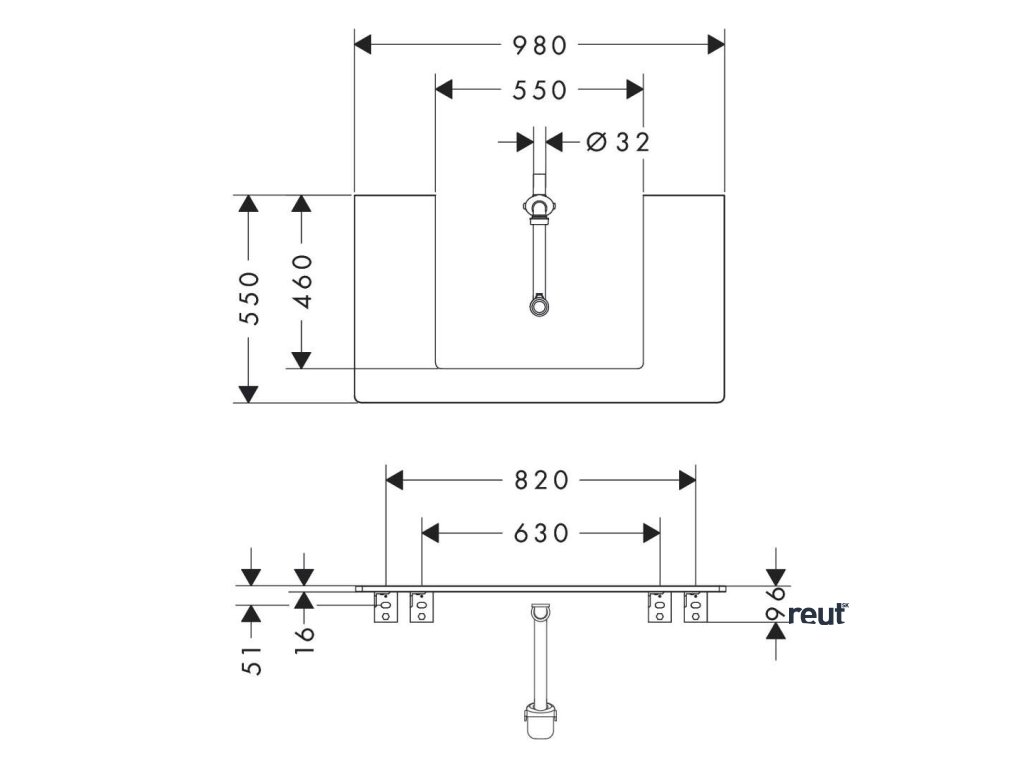 Hansgrohe Xelu Q Doska pod umývadlo 98x55 cm, výrez uprostred, prírodný dub 54110230-HG