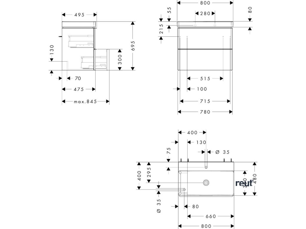 Hansgrohe Xelu Q Skrinka s umývadlom, 63x78x50 cm, 2 zásuvky, matná sivá/matná čierna 54378670-HG