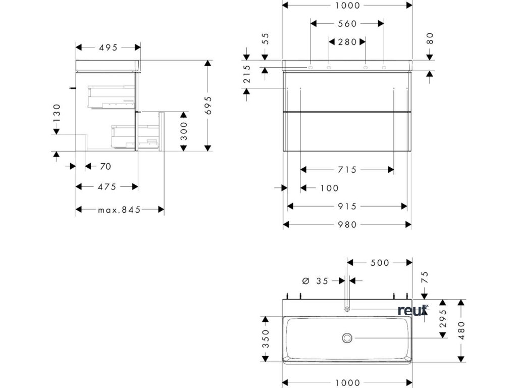 Hansgrohe Xelu Q Skrinka s umývadlom, 63x98x50 cm, 2 zásuvky, matná sivá/matná čierna 54384670-HG
