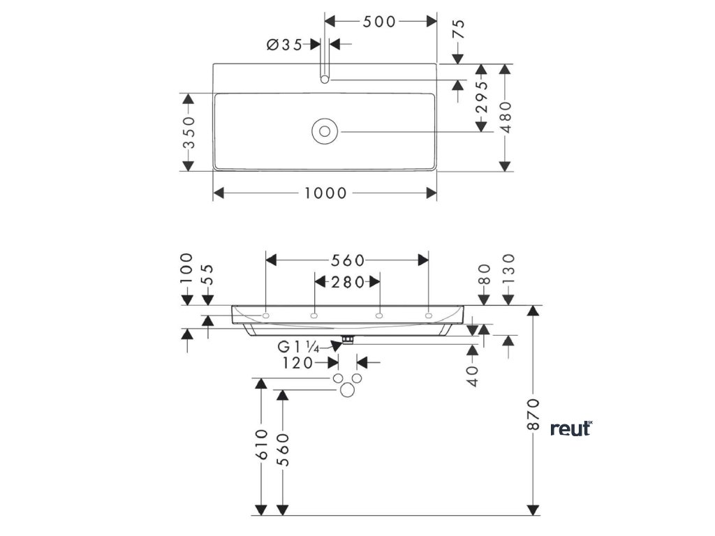 Hansgrohe Xelu Q Umývadlo 100x48 cm, bez prepadu, s otvorom na batériu, SmartClean, biela 61036450-HG