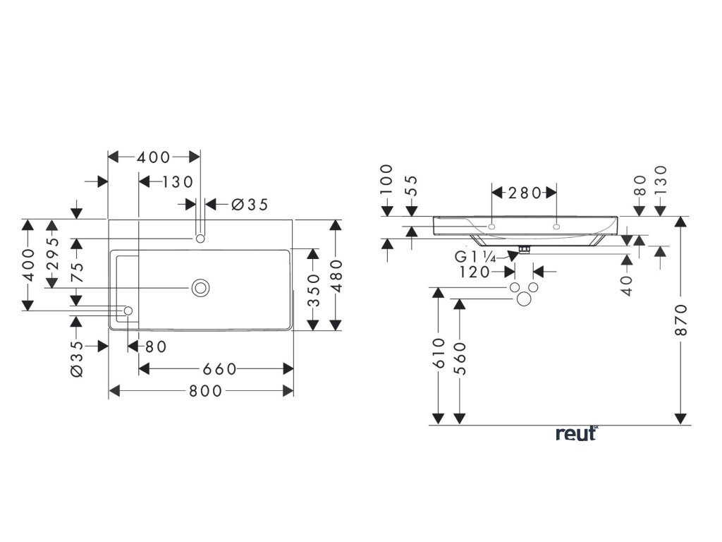 Hansgrohe Xelu Q Umývadlo 80x48 cm, bez prepadu, otvory na batériu a ovládanie, SmartClean, biela 61034450-HG