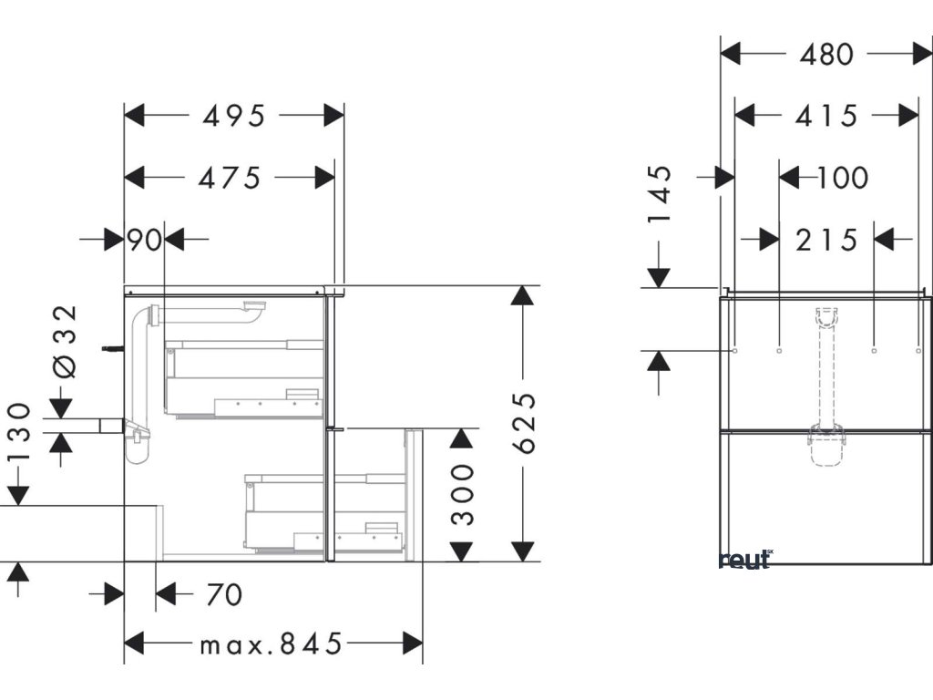 Hansgrohe Xelu Q Umývadlová skrinka, 63x48x50 cm, 2 zásuvky, tmavý orech/matná čierna 54022670-HG