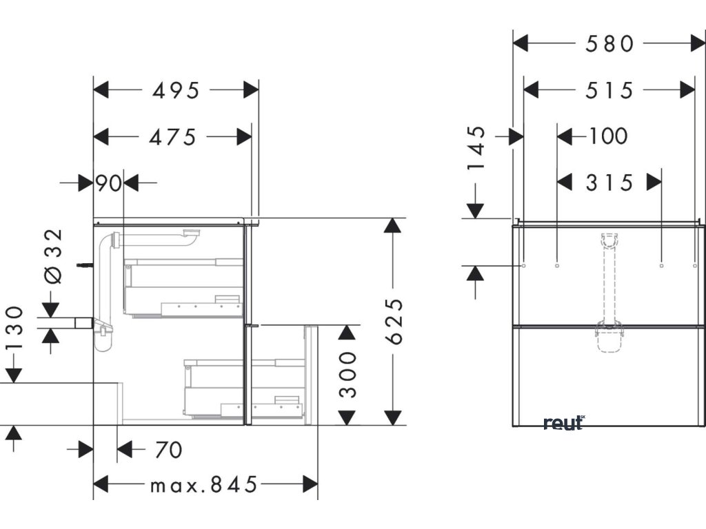 Hansgrohe Xelu Q Umývadlová skrinka, 63x58x50 cm, 2 zásuvky, tmavý orech/matná čierna 54026670-HG