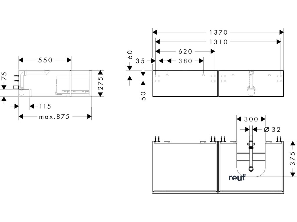 Hansgrohe Xevolos E Umývadlová skrinka, 28x137x55 cm, 2 zásuvky, matná biela/štruktúrovaný bronz 54322390-HG