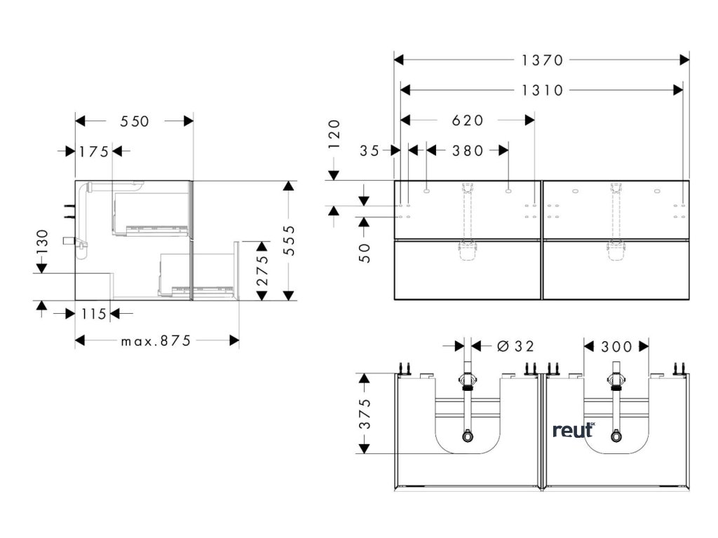 Hansgrohe Xevolos E Umývadlová skrinka 137x56x55 cm, 4 zásuvky, matná sivá/tmavý dub 54198730-HG