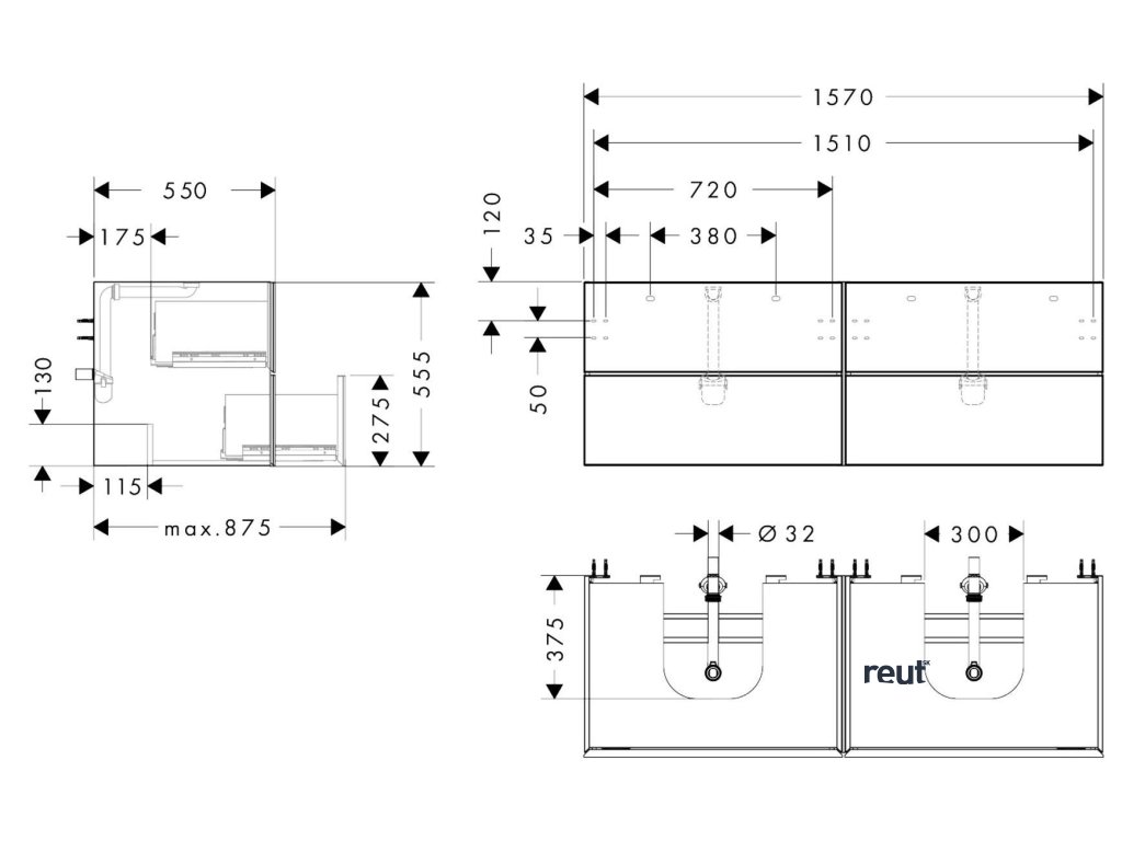 Hansgrohe Xevolos E Umývadlová skrinka 157x56x55 cm, 4 zásuvky, matná sivá/bronz 54201390-HG