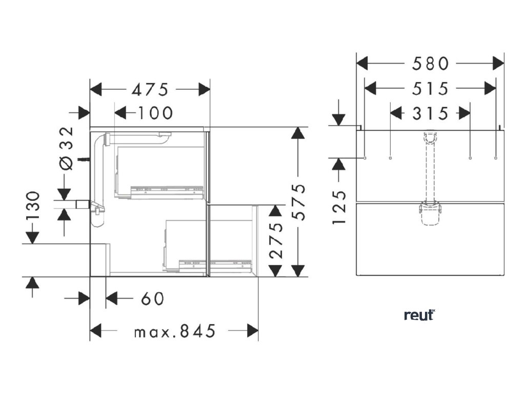 Hansgrohe Xevolos E Umývadlová skrinka 58x58x48 cm, 2 zásuvky, matná béžová/tmavý dub 54176730-HG