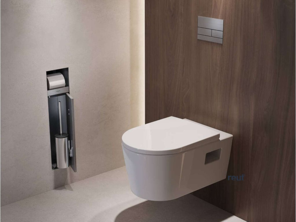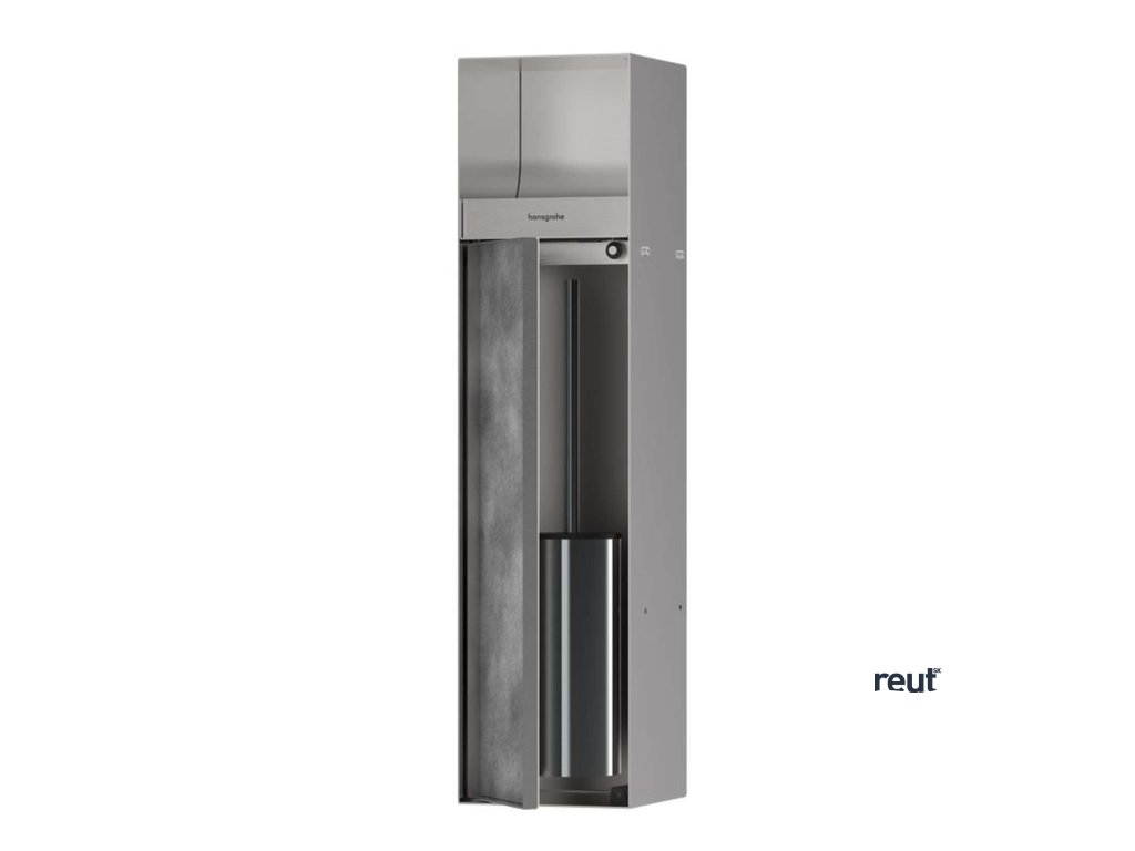 Hansgrohe XtraStoris Rock Podomietkový držiak toaletného papiera s WC kefou, s dvierkami, kefovaná oceľ 56062800-HG