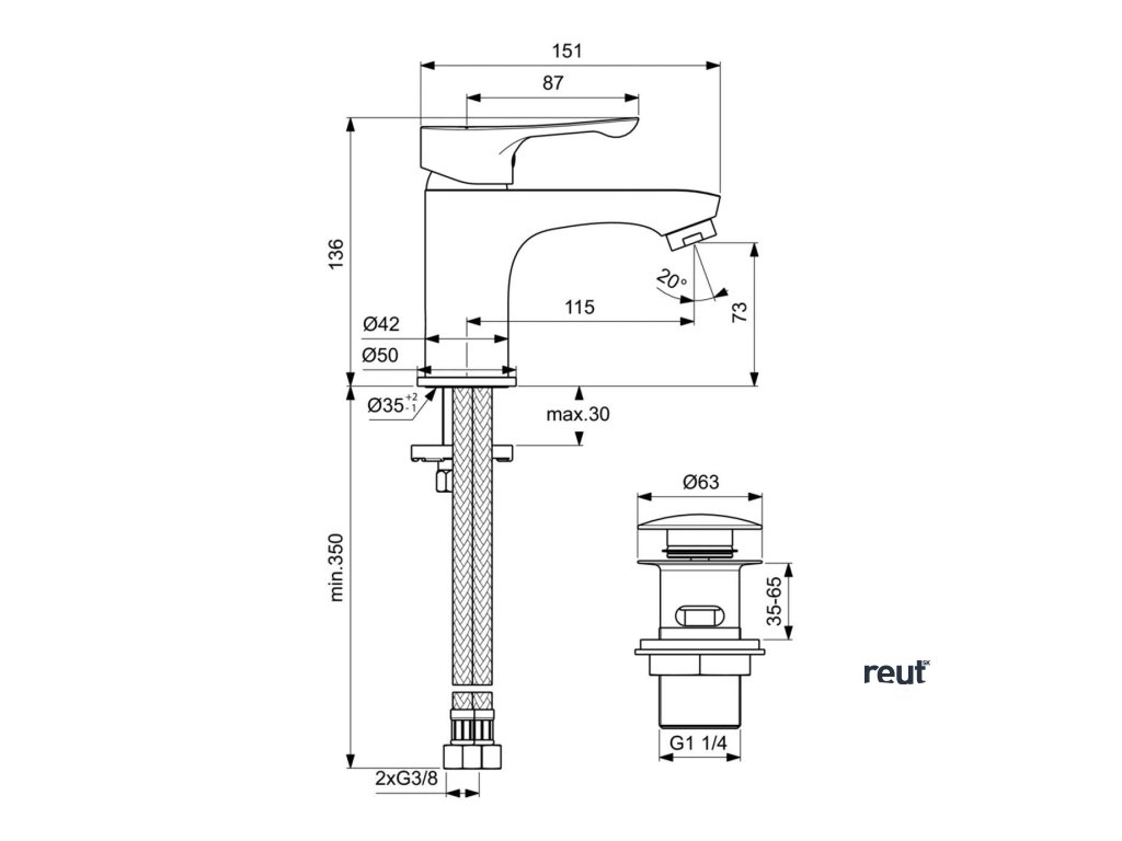Ideal Standard Alpha Umývadlová batéria s výpustom Click-Clack, chróm BC814AA