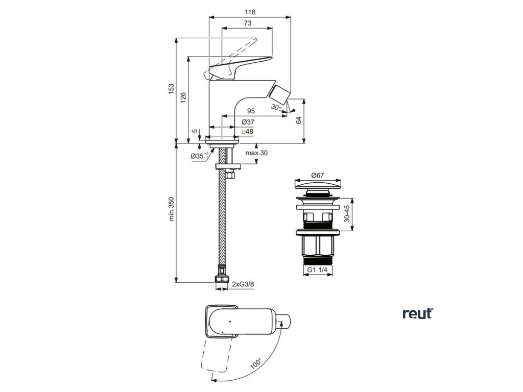 Ideal Standard Ceralife C Bidetová batéria s výpusťou Click-Clack, BlueStart, hodvábna čierna BE059XG