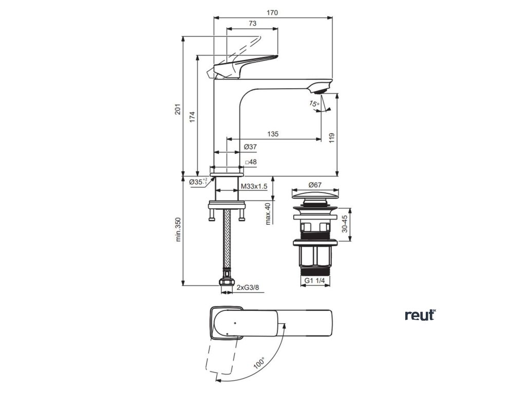 Ideal Standard Ceralife C Umývadlová batéria s výpusťou Click-Clack, BlueStart, chróm BE105AA