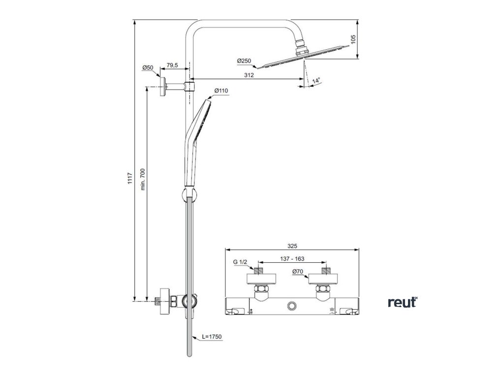 Ideal Standard CeraTherm Sprchový set s termostatom, priemer 25 cm, 3 prúdy, chróm A7565AA
