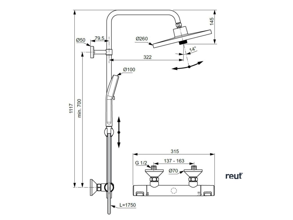 Ideal Standard CeraTherm Sprchový set s termostatom, priemer 26 cm, 2 prúdy, chróm A7210AA