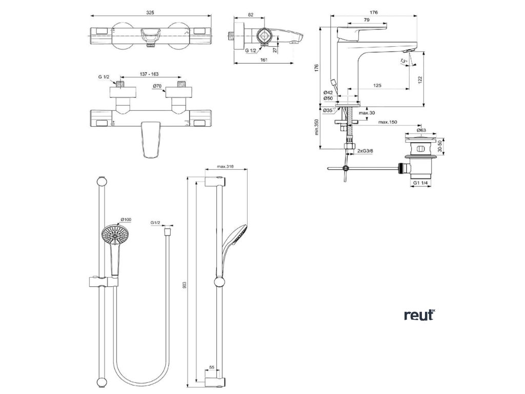 Ideal Standard CeraTherm Sprchový set s termostatom a umývadlovou batériou, 3 prúdy, chróm BC985AA