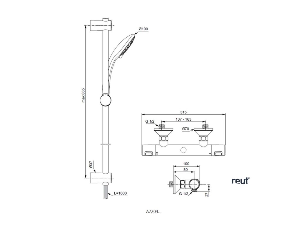 Ideal Standard CeraTherm Sprchový set T25 s termostatom, 3 prúdy, chróm A7204AA