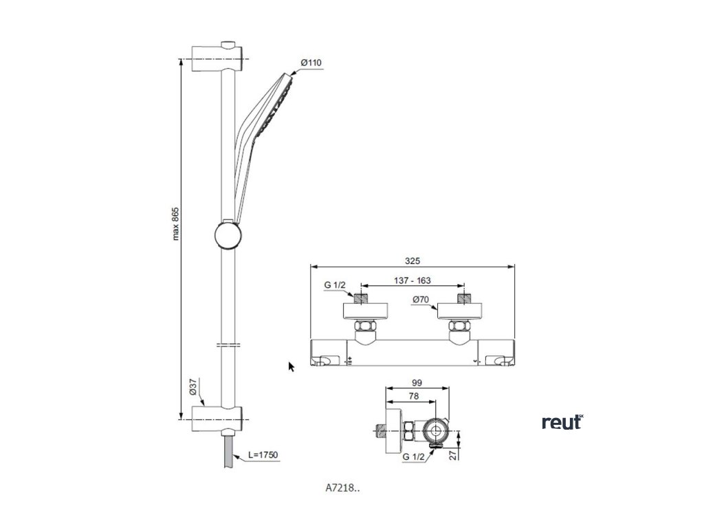 Ideal Standard CeraTherm Sprchový set T50 s termostatom, 3 prúdy, chróm A7218AA